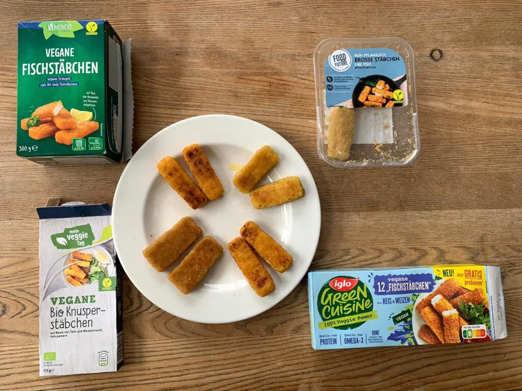 Bei Lidl, Aldi und Penny haben wir bei den Eigenmarken zugeschlagen. Dazu haben wir noch die veganen Fischstäbchen vom Branchenprimus Iglo gekauft. Im Netto war das Regal leider leer. Sehr schade! Es hindert uns aber nicht daran, die anderen Produkte auf Herz und Nieren oder besser gesagt auf Reismehl und Weizenprotein zu testen.