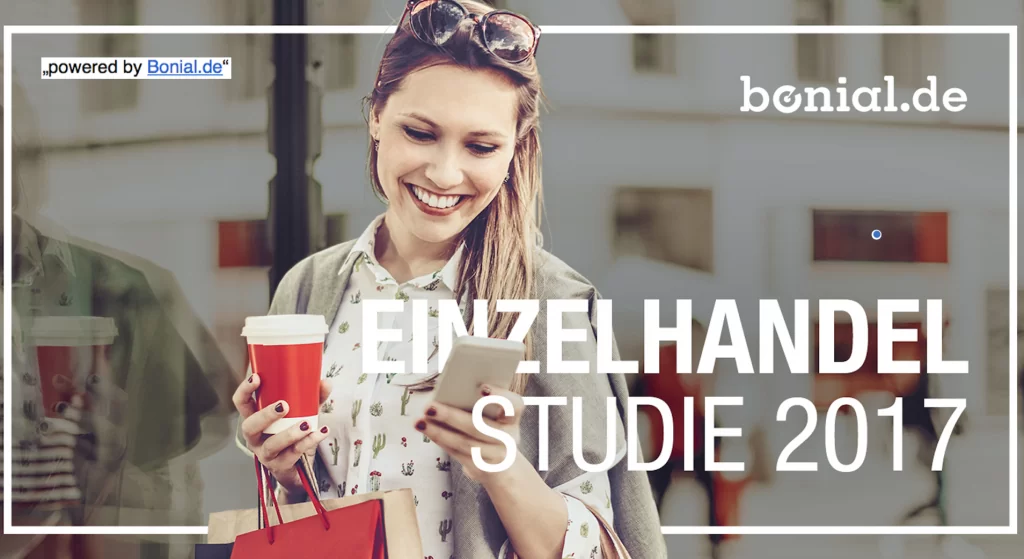 Weitere Informationen, wie Ihr Ladengeschäft von digitalen Diensten und dem mobilen Internet profitieren kann, finden Sie in der Großen Handelsstudie 2017, (die Sie hier kostenlos herunterladen können). Die Studie wurde von Prof. Gerrit Heinemann (Hochschule Niederrhein) im Auftrag von Bonial Deutschland und mit Unterstützung des Handelsverbands Deutschland (HDE) durchgeführt.
