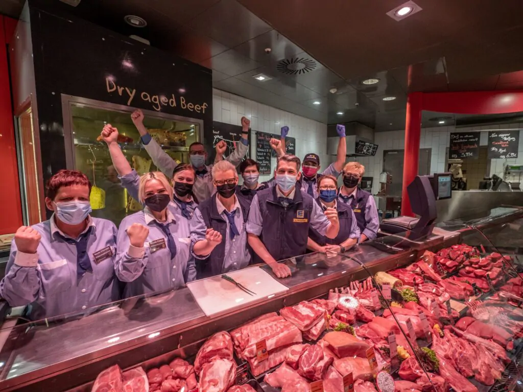 Für gute Laune sorgen nicht nur die Produkte: Die 19 Mitarbeitenden an der Bedientheke des EDEKA Center Wehrmann bestechen durch Freundlichkeit, Motivation und Kompetenz. Die Bedientheken für Fleisch und Wurst im Markt liegen sich gegenüber und sind allerdings hervorragend bestückt. Ein weiteres Highlight: der mittig platzierte Steak-Tresen mit 20 internationalen Steakartikeln, die fester Bestandteil im Sortiment sind.