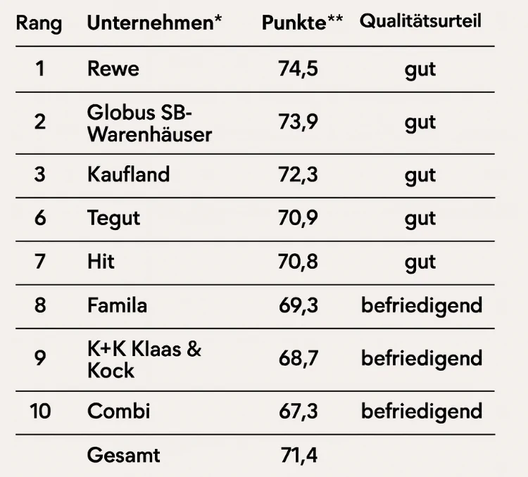 Rewe triumphiert mit einem glanzvollen „gut“ und dominiert gleich mehrere Kategorien:
