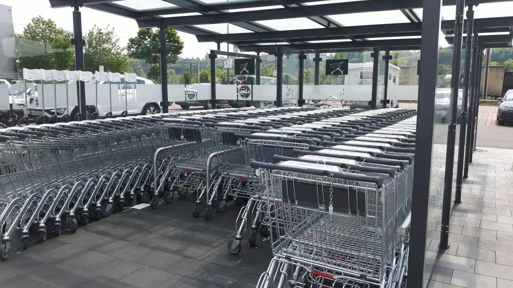Am richtigen Standort? Kunden suchen auf dem Weg in den Markt zumeist den EKW am Eingang. Nach dem Einkauf werden sie gerne in den Boxen auf dem Parkplatz abgestellt. Der richtige Einsatz von Wagenschieber ist unabdingbar.