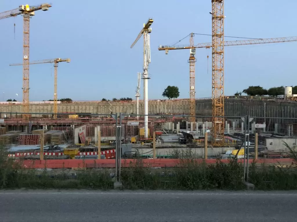 Mehr als 10 Kräne ragen mittlerweile aus der gigantischen Baugrube
