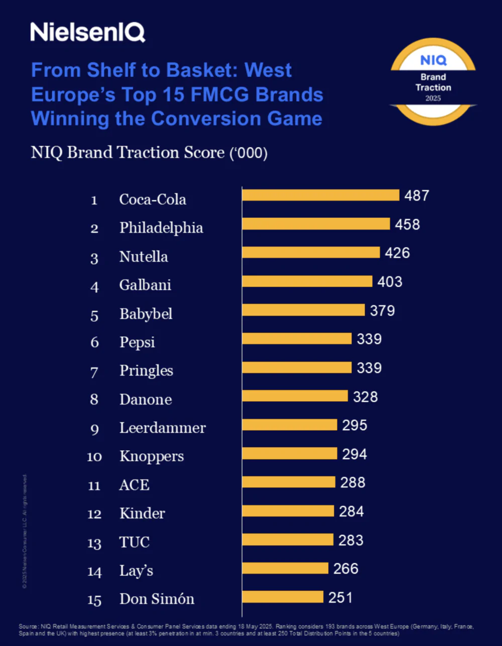 Die 15 stärksten FMCG-Marken in Westeuropa laut NIQ Brand Traction Score