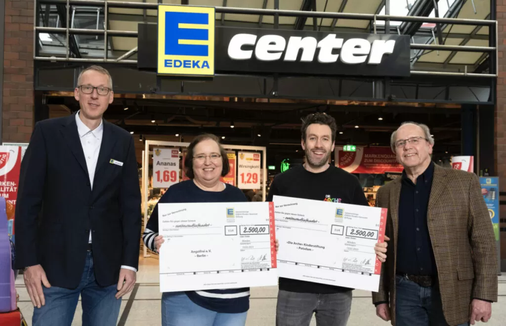 Die gemeinnützige EDEKA Minden-Hannover Stiftung spendete jetzt jeweils 2.500 Euro an den Angstfrei e.V. und „Die Arche“ Kinderstiftung Christliches Kinder- und Jugendwerk in Potsdam.