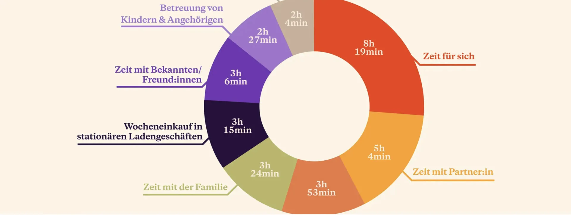 – Die Befragten nehmen sich wöchentlich rund acht Stunden Zeit für sich, etwa fünf Stunden verbringen sie mit Partner:innen.