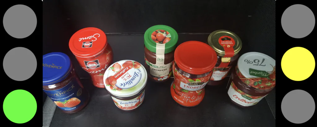 Die Unterschiede aller getesteten Sorten waren deutlich niedriger als erwartet. Diese Woche stieg Grandessa mit 75% Fruchtanteil auf dass höchste Treppchen. Aber auch Mövenpick, Schwartau Samt, Grandessa cremig, Maribel 75% und Rewe Bio waren ganz klar GRÜN. Nur Landliebe mit 70% Frucht musste sich mit GELB begnügen. Und ROT gab es diese Woche wiederum keine. Gesamtsieger aller 15 getesteter Sorten bleibt aber d´arbo naturreine Garten Erdbeeren mit 50% Fruchtanteil. Herzlichen Glückwunsch hierzu. Fast alle anderen im Test mussten sich aber nicht verstecken, denn sie waren ebenfalls nahe dran an der Krone.