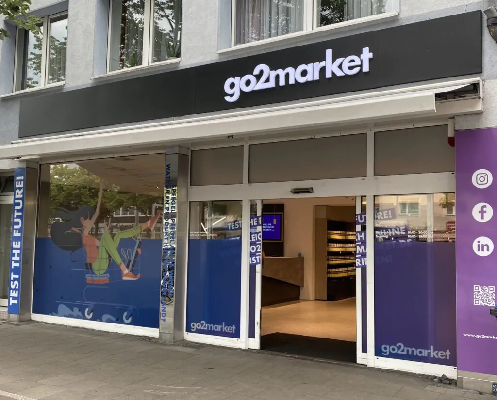 go2market ist eine schnelle und effiziente Marktforschungsplattform für die Markenindustrie und Food-Start-Ups; ganz im Stil des aus der Industrie bekannten rapid prototypings sind Ergebnisse innerhalb von 4-6 Wochen möglich. Es ist der Realitycheck für Produktinnovationen, der im Regal der Händler oft schwierig zu bewerkstelligen ist, da viele Produkte in der Sortimentsfülle einfach untergehen; nicht nur im Kühlbereich, sondern auch im Trockensortiment. Die Werkzeuge bei go2market sind ein ca. 400qm großes Ladenlokal, die go2market App, viel Instore-Technik und ein 3.000 Teilnehmer starkes Panel.