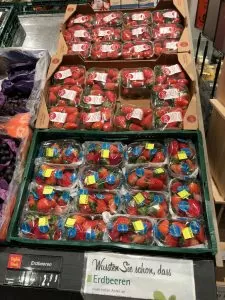 Große Massenplatzierungen am Eingang, gerade bei gutem Wetter sorgen für reichlich Aktion. Man sollte bei der Disposition unbedingt drauf achten, dass die Kaliber nicht größer/schwerer sind als die Waagen in der Abteilung wiegen können. Einige Händler bieten daher auch kalibrierte Ware an, die man dann per Stückpreis verkaufen kann.