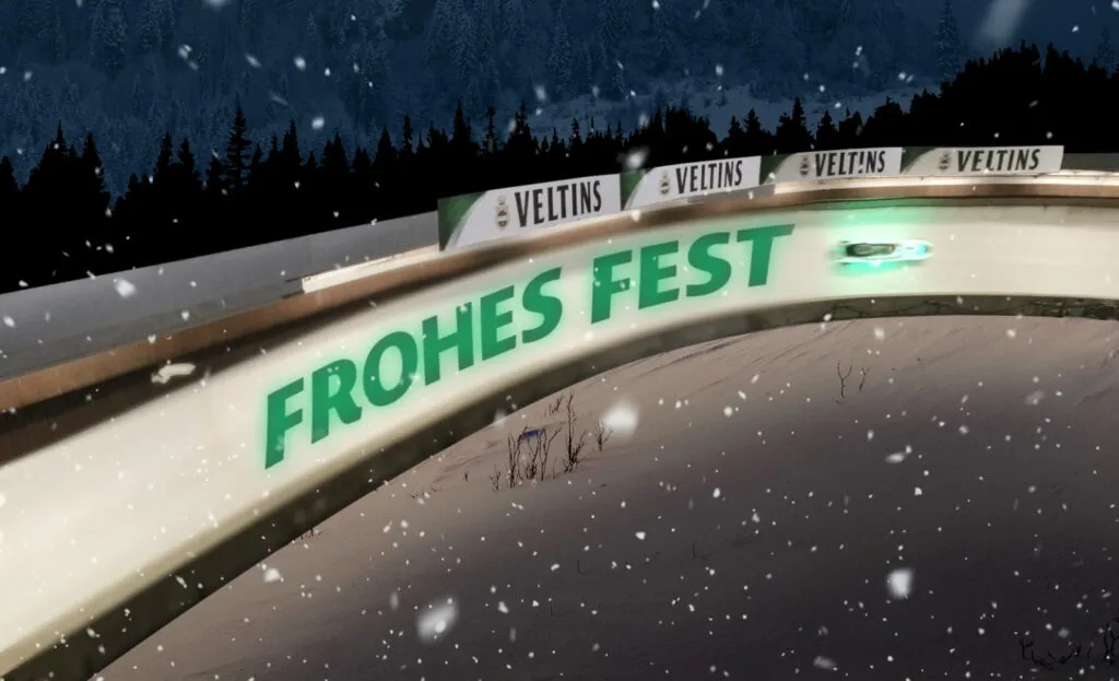 Um frisches Veltins auch in diesem Jahr pünktlich zum Fest zu liefern, nutzt der Weihnachtsmann kurzerhand einen ganz und gar ungewöhnlichen Weihnachtsexpress. Kutsche war gestern – der Marken- Bob bringt ihn und seine Elfen diesmal in rasender Geschwindigkeit zum Ziel. Mit rund 130 Stundenkilometern sausen die fröhlichen Festboten durch die Winterberger Veltins-EisArena und erleben eine atemberaubende und ebenso stimmungsvolle Fahrt. Wahrlich ein anstrengender Job – da hat der Mann mit dem weißen Rauschebart sich vor dem Stress am Heiligen Abend auch ein kühles Pils in seiner weihnachtlich geschmückten Hütte verdient. Genussvoll schenkt er sich ein frisches Veltins ein und genießt die festliche Stimmung. Die Zeit für Entspannung ist gekommen, denn dank des Veltins- Weihnachtssexpress‘ sind alle Markenfreunde rechtzeitig versorgt worden. Davon handelt der diesjährige Veltins-Weihnachtsdreh, der zum vierten Advent in vielen Online-Kanälen startet. Einen kleinen Vorgeschmack zum Video liefert bereits ein Teaser auf dem Facebook- und Instagramkanal der Marke. Hier bleibt vorerst offen, ob es der Weihnachtsmann pünktlich schafft, sein frisches Veltins auszuliefern.