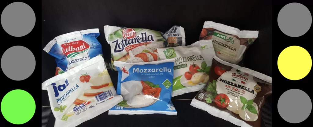 Trotz dem Basilikum Abzug wurde Zotts Zottarella Bester. Aber auch Ja, K Classic und Galbani sind klar GRÜN. Die Bios und Mondo hingegen müssen sich mit GELB begnügen. Aber egal, ob Bayern oder Italien – ROT gab es nirgendwo. Und da alle ausgewählten Produkte auch noch so günstig sind, kann der treue Mozzarella Kunde sich nicht verkaufen. Wir wünschen weiterhin guten Appetit.