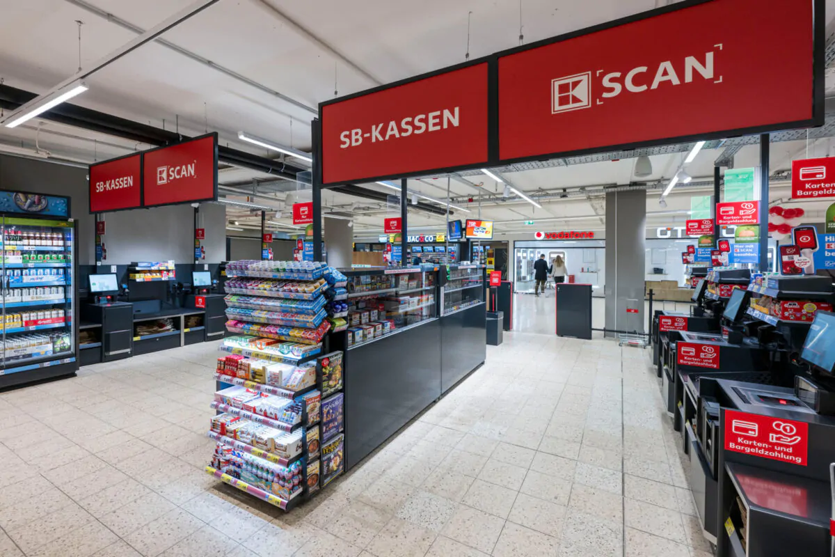 Die SB-Kassen sind Grundlage für K-Scan, mit dem Kaufland das Einkaufen weiter vereinfacht. Ein mobiler Handscanner spart jede Menge Zeit, denn an der SB-Kasse müssen die Einkäufe lediglich bezahlt werden, ohne sie wieder ein- und auszuräumen. Voraussetzung ist lediglich die Registrierung mit der Kaufland Card: Am Eingang der Filiale können Kunden nach dem Scannen der Kaufland-Card direkt einen der Handscanner entnehmen. Alternativ können sie auch ihr Smartphone nutzen. Während des Einkaufs können die Kunden den jeweiligen Artikel direkt scannen, bevor sie ihn in den Wagen legen. Zum Bezahlen wird der gescannte Einkauf über einen QR-Code an die SB-Kasse übergeben. Dort müssen die Artikel dann nur noch bezahlt werden.