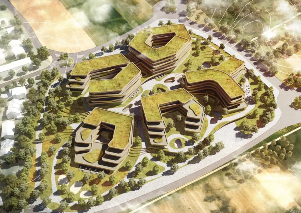 Die terrassenförmigen Baukörper der neuen Lidl Handels-Zentrale sollen sich futuristisch und architektonisch hochwertig in die Umgebung eingliedern.