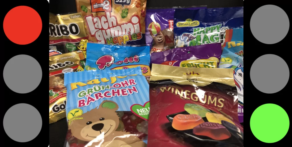 Optisch waren alle Gelantinchen sehr kindgerecht, bunt und in schönen Formen gegossen. Aber bereits geruchlich aus der nur halb geöffneten Verpackung waren große Unterschiede riechbar. Grün-Ohr, Trolli, KClassic und gut & Günstig waren da nicht so unser Ding. Bei der Beurteilung des Geschmacks mussten die Ampel-Foodzies aber viel Feingefühl walten lassen und zwischen gelutscht und gekaut unterscheiden. Tatsächlich erreichten die Kinder-froh-Macher aus HariBonn volle Punktzahl. Nur Spurenelemente dahinter dann aber schon die Lachgummis und Lidl´s Happy Magica. Auch die Gut & Günstig von Edeka und Katjes Wunderland waren sehr typisch. Dann ging es aber stärker bergab. Die Winegums von C&H und Trolli erreichten noch einen Punkt. Abgeschlagen dann aber Katjes Grün-Ohren und KClassic; die taugten einfach nichts.