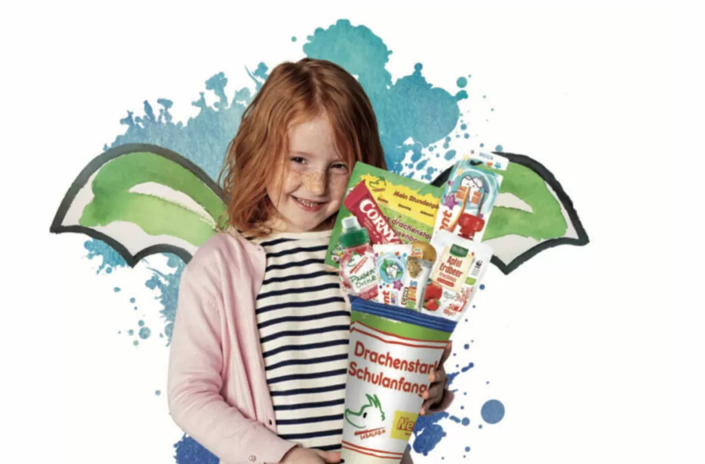 Leckere Snacks und frisches Obst für die große Pause, Zahnpflegeprodukte der Tabaluga-Exklusivmarke, einen Stundenplan sowie das fröhliche Drachen-Design – die gratis Netto-Schultüte bringt alles mit für einen drachenstarken ersten Schultag. Und für alle Kinder, die noch mehr Wissenshunger haben, erklären die farbenfrohe Illustrationen im beiliegendem Netto-Kinderbuch „Das drachenstarke Pausenbrot“, wie wichtig gesunde Snacks zum Lernen sind.