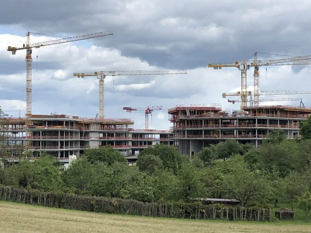 Mehr als 10 Kräne ragen mittlerweile aus der riesigen Baugrube