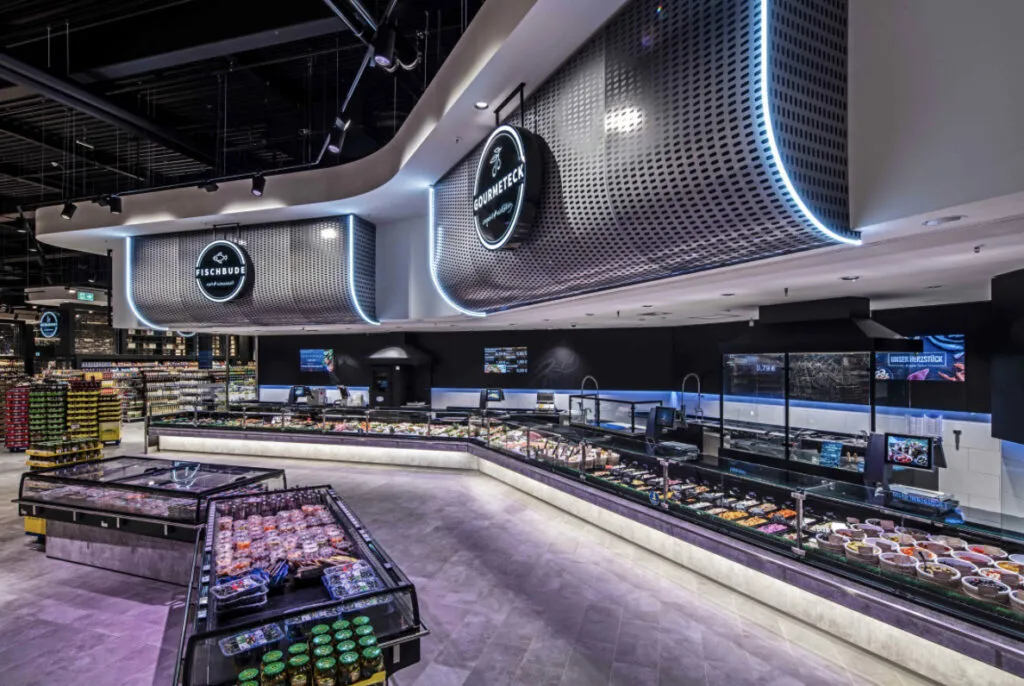 Das E-Center Paschmann im Hafen-Center in Mülheim an der Ruhr begeistert mit einem beeindruckenden Raumkonzept. Auf 4.800 m² bietet der Markt mit einer Raumhöhe bis zu 7 m die ideale Inszenierung für das frischeorientierte Sortiment. Fisch, Käse, Wurst und Fleisch werden in der Bedientheke SIRIUS®3 und im SB-Kühlregal TopSpot MIO+ präsentiert. Frische Salate und Antipasti im FreshMaxx. Im Bistro des Vorkassenbereichs wird das To-go-Angebot ansprechend und energieeffizient in der Theke GOURMET präsentiert.