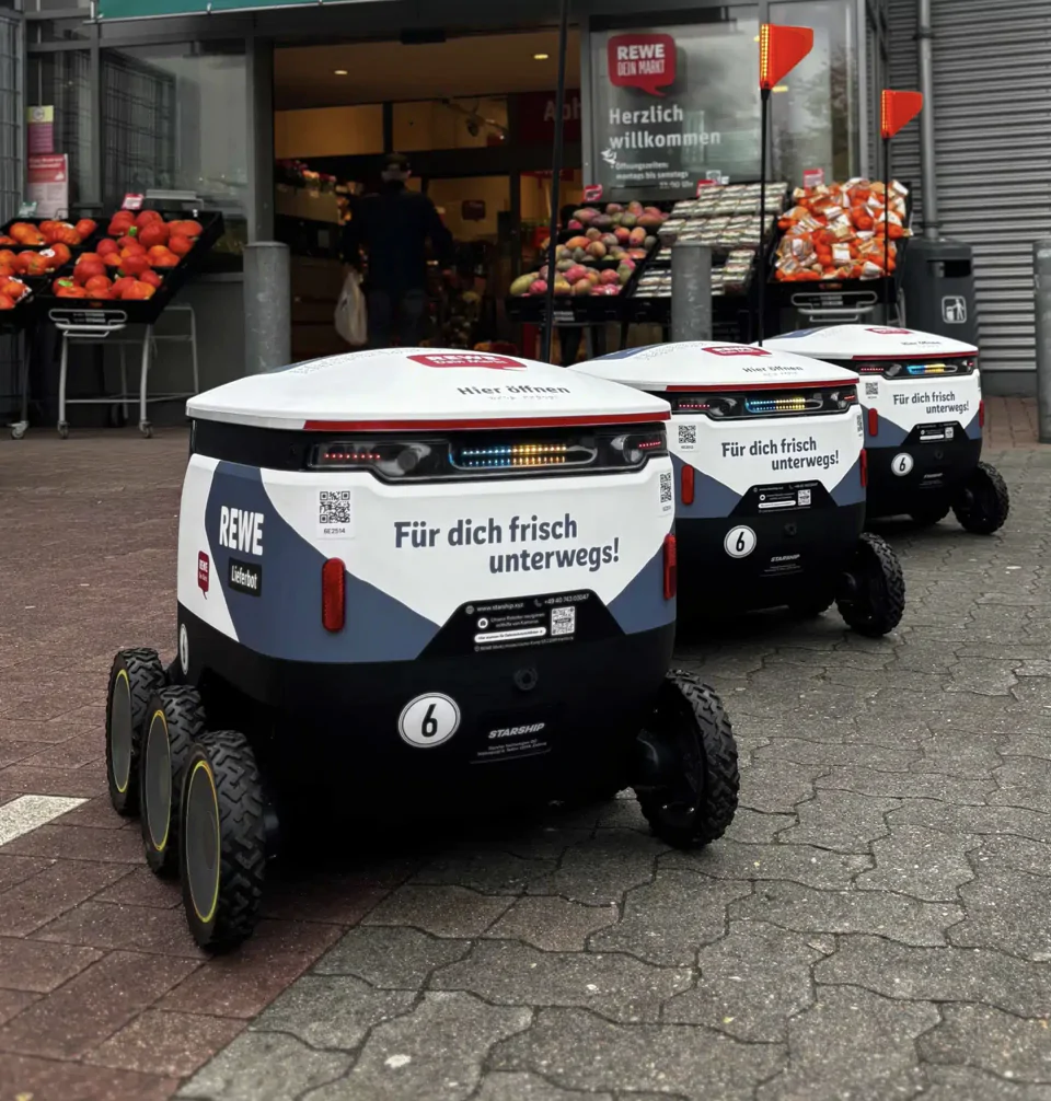 Rewe in Hamburg mit neuem Roboter-Modell unterwegs. Mit größerem Sortiment und verlängerten Lieferzeiten.