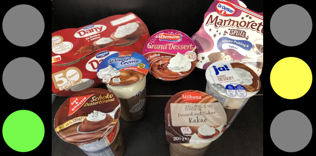 Die Ampel Foodzies haben sich diese Woche die Schokopuddings mit Sahnetopping vorgenommen. Rewe, Edeka, Lidl und Netto mussten sich dieses Mal im Test kräftig strecken, um tatsächlich die Topping-Position zu erreichen. Im Test waren drei Markenhersteller, nämlich Dr. Oetker, Ehrmann und Danone. Dazu gab es die vier jeweiligen Handelsmarken. Oetker und Danone zeigten echte Schokopuddings, alle anderen deklarierten Desserts. Preislich waren zwischen beiden Kategorien große Preisunterschiede. Die Marken waren umgerechnet mehr als drei mal so teuer, wie ihre billigen Mitstreiter. Waren es diese Marken auch Wert? Die Einstiegspreislagen hingegen kosteten unisono ihre 25 Cent für 200 Gramm, ein Wahnsinnspreis für ein solches Produkt. Leider gab es Oetker´s Marmorette und Danone´s Dany nur als 4er Pack, dafür aber in kleineren kindgerechten Packungsgrößen.