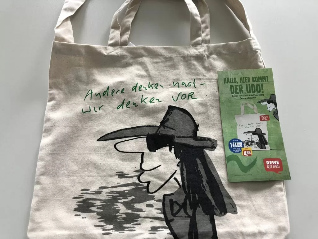 Neben dem praktischen Nutzen der Baumwolltasche, stellt sie zudem eine gute Möglichkeit dar ein humanitäres oder soziales Projekt zu unterstützen. Erhältlich ist sie in allen teilnehmenden REWE-Märkten und jeweils nur für kurze Zeit. Bei einem Preis von 4,99 EUR geht 1 EUR pro Tasche an die Udo Lindenberg Stiftung.