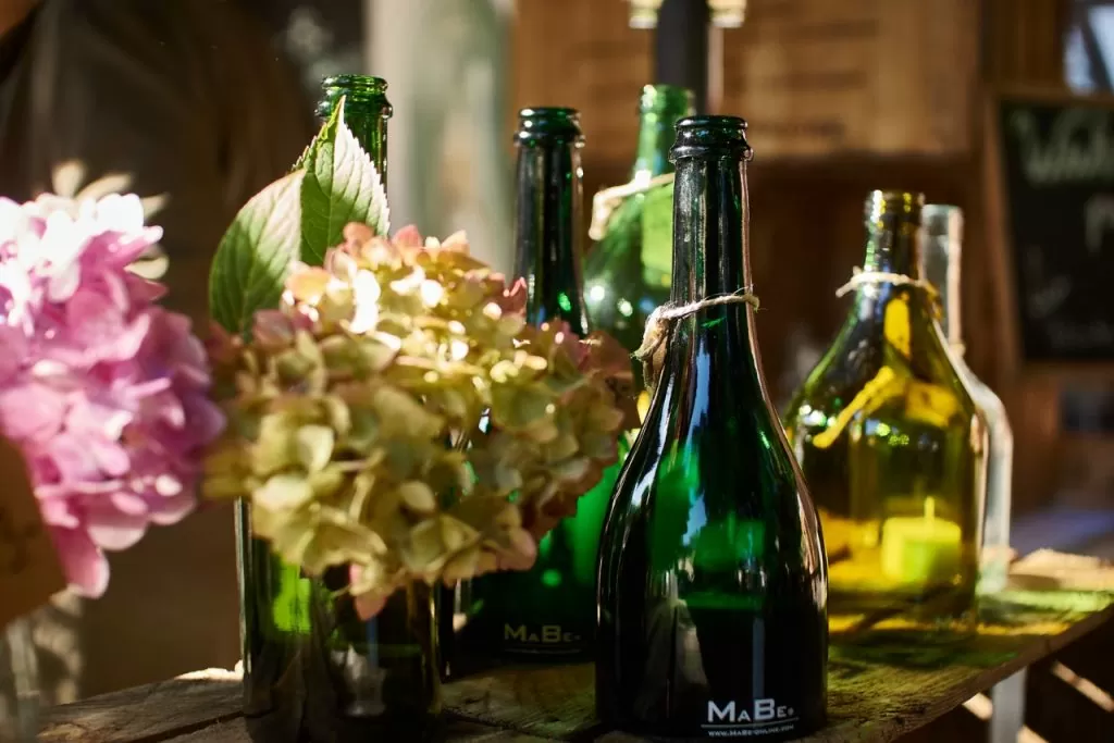 Aus dem Flaschenwindlicht-Bauen als Mitbringsel für Freunde entsteht schließlich eine Geschäftsidee: Den Upcycling- und Nachhaltigkeits-Trend mitzugehen und die Produkte in den Handel zu bringen. Beuckers Ehefrau Ute gründet ein Kleinunternehmen und eröffnet einen Onlineshop. Auf der Suche nach Rohmaterial zieht Martin Beucker regelmäßig in Arbeitsklamotten los, um in den Kneipen und Restaurants der Umgebung Altglas einzusammeln. „Nicht selten bin ich auf der Suche nach besonders schönen Flaschen in Container gestiegen und mit Scherben an den Schuhsohlen nach Hause gekommen“, schmunzelt er. Mit 30 Windlichtern stehen die Beuckers vergangenes Jahr erstmalig auf dem Johannesberger Adventszauber. „Die rege Nachfrage erklärten wir uns damit, dass die Leute aus dem Ort uns kennen und aus Gefälligkeit kaufen“, erinnert sich Ute Beucker. Doch auch auf dem Weihnachtsmarkt der Auberge de Temple ist das Interesse groß. Spätestens auf dem Seligenstädter Frühlingsmarkt, als Käufer sogar mehrmals vorbeikommen, um Nachschub zu holen, merken die beiden: Mit ihrer Idee, einer eigentlich nutzlosen, leeren Einwegflasche eine neue Funktion zu geben und sie zu einem Designobjekt zu machen, scheinen sie einen Nerv der Zeit zu treffen.