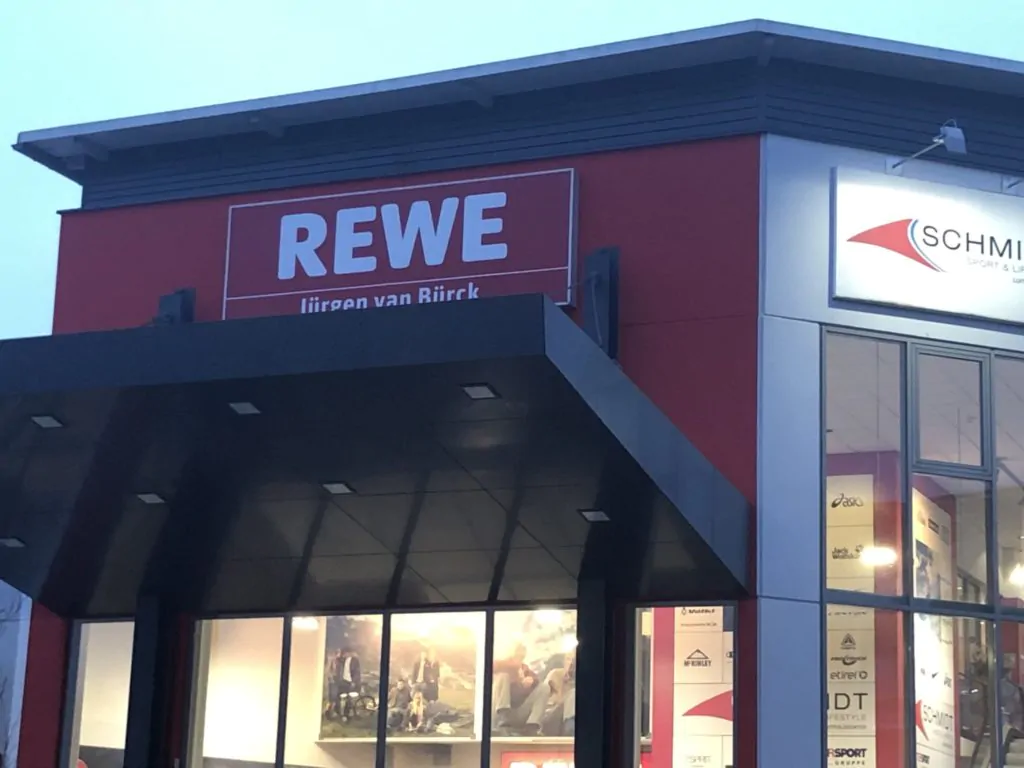 Schon, wenn man draußen auf den Markt zugeht und danach die Verkaufsfläche betritt, hat man das Gefühl eine echte Großfläche zu besuchen. Der heutige REWE Markt ist über 2000 qm groß, wirkt aber deutlich wuchtiger.