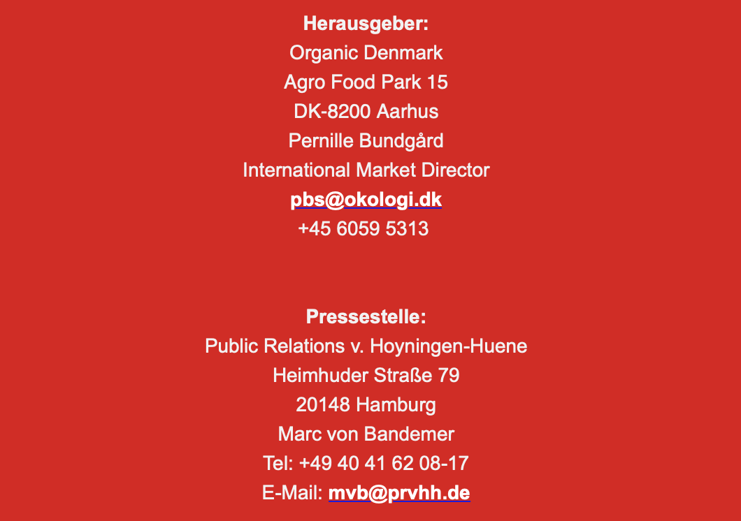 Content und Bilder: Pressemitteilung von Organic Danmark im Dezember 2021